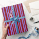 Den här papprare utformningen har en röd mörk och en strimlad färgad av lila i mönster. Det kan vara roligt för använda att slå in papprare som detta när man förbereder gåvor eller presenter i firande på en födelsedag, en bröllop, en årsdag eller något annat evenemang.