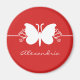 Söt och enkelt Butterfly Swirls Anpassade Magnet med en söt butterfly silhouette och en delikat elegant snurrande gräns. Den här vackra kylmagneten är ett underbart sätt att lägga upp viktiga anteckningar, särskilt när du anpassar dig efter ditt namn eller annan personlig text! Lägg bara till en egen text i det medföljande utrymmet eller klicka på knappen "Anpassa" om du vill ändra typsnitt, färg eller lägga till eller ta bort text.