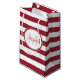 En moderiktig mörk röd och vit kandisväska rand liten presentväska. Anpassa detta moderna mönster genom att lägga till namn och lägga till den första hedersgästen i monogrammet. Denna eleganta monogramdesign är en del av Chili Pepper Rand Party Essentials Summer Färg Samling.