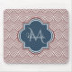 En elegant mörk red art deco arched scallop mönster mouspad med ett marint blått quatrefoil-märke som du kan anpassa genom att enkelt lägga till ditt eget monogram och namn. Det här är en del av uppsättningen av Spjutäpple Scallops Sailor Blue Monogram Vår.