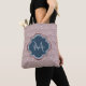En elegant mörk red art deco arched scallop mönster to te bag med ett marint blått quatrefoil-märke som du kan anpassa genom att enkelt lägga till ditt eget monogram och namn. Det här är en del av uppsättningen av Spjutäpple Scallops Sailor Blue Monogram Vår.