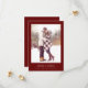 Dessa minimalister och elegant bröllop sparar datumkorten med modern vit text på en röd mörk, maronbakgrund, med ditt personliga foto. Ett djärvt, enkelt och snyggt utseende.