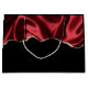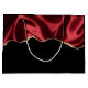 En presentväska med en faux-satingdesign. Mörk röd med folder och guld glitter kant.