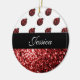Mörk red ladybug faux glitter sparkles Monogram Julgransprydnad Keramik