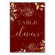 Mörk Red Maroon & Guld Peony Modern Blommigt Bröll Bordsnummer