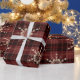MÖRK RED PLAID MÖNSTER MED GULD ORNADER PRESENTPAPPER
