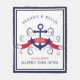 Elegant-mörk-röd och marinblått sjöbåtankare med elegant-blå snurrande accent och mörk-röd banderoll för bröllop monogram.