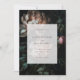 En mörk moody sparar datumkortet, romantiken och somern med en vintage stil-målning av mjuka peonblommor, ställer elegant in typografi för din bröllop-information och ditt anpassningsbar-foto på baksidan. Perfektens plocka för ett vinterbröllop, mansion bröllop, svart temat bröllop eller vintage stil bröllop.