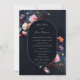 En underbar blommigt arrangemanga ramar den här fantastiska bröllopsinbjudan med en mörk romantisk tema. En marin bakgrund med mörk och en rundad rektangel ram är bakgrunden till klassisk kalligrafi med elegant i en guld-nyans (digital effekt, inte guld). Ett val av perfekt för par som kärlek den mörk romantik bröllop lever i. En mörk och en moody bröllopsinbjudan som ger många färg och ge en rad olika färg valmöjligheter att matcha en svart bröllop eller en mörk blått bröllop. Elegant och romantik, det här är en modern klassisk bröllopsinbjudan.