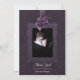 Mörkens lila-dämpare anger en rik för det här vackra bröllop-temat Tack. Ett matchande gräns med vackra detaljer ramar ditt foto. Fint ro med en sprinkl av mörk glitter lägger till en speciell beröring på framsidan och ett passande kort tillbaka. All text fram och tillbaka är helt och hållet anpassade från dig.