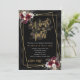 Sätt tonen för din fest med denna mörka romantiska gotiska inbjudan till förlovningsfest. Med stämningsfulla burgunderfärgade blommor, eleganta guldförgyllningar och slående dödskallekonst, blandar denna design romantik med en djärv gotisk kant. Perfekt för par som älskar en dramatisk, Halloween-inspirerad estetik, skapar denna inbjudan ett oförglömligt första intryck för din förlovningsfirande.