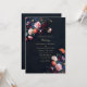 En vacker blomsterarrangemang inramar denna fantastiska bröllopsinbjudan med ett mörkt romantiskt tema. En mörk marin bakgrund med svarta undertoner är duken för klassisk typografi och stänk av elegant kalligrafi i en guldnyans (digital effekt, inte riktigt guld). Ett perfekt val för par som älskar den mörka romantiska bröllopsstilen och bröllopspapper med en målad design, i stil med de gamla holländska mästarna. En mörk och dyster bröllopsinbjudan som ger massor av färg och ger ett brett utbud av färgalternativ för att matcha en svart bröllopsklänning eller en mörkblå bröllopsdräkt. Elegant och romantisk, detta är en modern klassisk bröllopsinbjudan