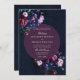 En blommigt arrangemang av mörk moody blommigtar i jeveltoner ramar denna fantastiska bröllopsinbjudan med ett mörk romantiskt tema. Mörkens marinbakgrund och vågcirkel ram är bakgrunden till klassisk typografi och beröring av elegantens kalligrafi i en guld-nyans (digital effekt, inte guld). Ett val av perfekt för par som kärlek den mörk romantik bröllop vibe och juveltonestetik. En mörk och en moody bröllopsinbjudan som ger färg och ge en rad olika färg-val för att matcha en svart bröllop-grav. Elegant och romantik, detta är en modern klassisk bröllopsinbjudan till älskare om blommigt i stil på nederländska mästare, gothisk bröllop, mörk bröllop formgivning, moody mörk romantik och mörk romantiska blommigtar i juveltoner.