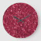 Mörk rosa red magenta faux sparkles glitter stor klocka