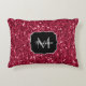 Mörk rosa red magenta faux sparkles Monogram Prydnadskudde