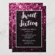 Mörk rosa sparkles glitter Sweet 16 elegant script Inbjudningar