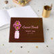 Söt rosa blommor, Mason burk på en mörk träbakgrund dekorerar denna gästbok. Bröllop gäst bokar är roligt för både paret och deras firare. Inbjudan deltar för att lämna dig bra-önskemål på mottagningen, och du har en chans att se tillbaka på komen i flera år. Dessutom kommer gästerna att få lämna sitt märke på evenemanget, för att inte tala om att de inte fick möjlighet att uttrycka sig personligen på den stora dagen. Anpassa bok genom att ändra texten i fält. Du kan ändra teckensnittet stil, storlek och färg.