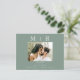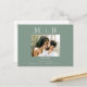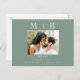 Simple & Sleek Mörk Sage with white monogram Spara datum. Bröllop. Förnamn och Efternamn. Modern. Vykort. Foto. Ett foto.