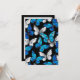Realistiskt, blått och vitt fjärilar sömlöst mönster på svart bakgrund.