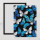 Realistiskt, blått och vitt fjärilar sömlöst mönster på svart bakgrund.