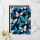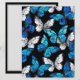 Realistiskt, blått och vitt fjärilar sömlöst mönster på svart bakgrund.