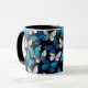 Mörk Sömlöst Mönster med Blue Butterflies Morpho Mugg