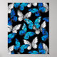 Mörk Sömlöst Mönster med Blue Butterflies Morpho Poster