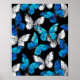 Mörk Sömlöst Mönster med Blue Butterflies Morpho Poster