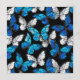 Realistiskt, blått och vitt fjärilar sömlöst mönster på svart bakgrund.