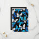 Realistiskt, blått och vitt fjärilar sömlöst mönster på svart bakgrund.