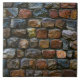 En bild av en stenvägg med mörka, färgglada fyrkantiga stenar