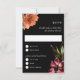 Det här vackra bröllop-svarskortet har höstfärgade blommigtar, en chic svart bakgrund och elegant. Den här designen är ett fantastiskt val för många stilar av evenemang, från klassiskt till biologiskt. Det finns många samordningsposter som bröllopsinbjudningar, sittkartor och ceremoniprogram i samlingen!