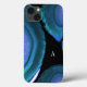 Elegant och ögonlocksfodral har en vibrerande bild av agate geode-segment i ljusa skuggor av teal, blått och violett mot rikens svarta bakgrund. Anpassa med initialer eller monogrammet inklämt i designen med klassiskt vitt bokstäver.