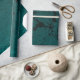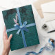 blommigt av mörkens snyggt för av teal-grönt skriver ut mönster växthus som frigör papper rullning. Elegant, dekorativ, klassande, modern, vacker, utskriven presentförpackning. Upphovsrätt Marg Seregelyi Fotography.