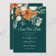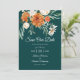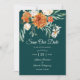 Mörk Teal Terrakotta Höst Blommig Foto Bröllop Spara datumet. Elegant förtrollande höstbröllop med akvarellblommor och elegant typografi med foto på baksidan av kortet inramat med grönska och blommor.