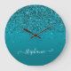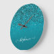 Mörk Turkos Glittery Gradient Girly Calligraphy Stor Klocka