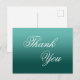 Anpassningsbar vit fin stil kalligrafi text "Tack" meddelande. Ljus teal och mörk turkos ombre bakgrund vykort. Monokrom grönaktig teal gradient vykort. En elegant typsnitt för bröllop, bröllop och baby shower och andra evenemang. Anpassa bakgrund och typsnittsfärger.