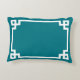 Dekorativ teal och vit geometrisk rektangulär gräns-accentkudde för grekiska Nyckel stil. Du kan anpassa det moderna serif-typsnittet stil, storlek eller färg efter behov. Anpassa den heltäckande bakgrunden och motifgrafiken i färg genom att välja färger eller matcha din hemdekoration. Vi har andra grekiska Nyckel gräns för andra formade produkter. Skicka en begäran om du behöver en annan gåva.