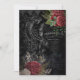 Ornate engraved scrollwork, silver snöre, burgandy ro och fransk script på Shabby Black Damask-bakgrund.