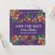 Mörk Vild Flowers bröllop spara datum har enkla blommor av ram vild som är gjorda med vattenfärg i snyggt. Mörk och färglös bröllopsinbjudan. Lila version.