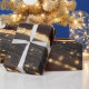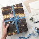 Mörk Walnut Wood Grain med mousserande floder Guld Presentpapper