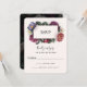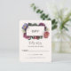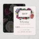 Detta mörka blommiga svarskort är perfekt för en twist på traditionella botaniska motiv. Designen har vackra peony- och rosenblommor i nyanser av burgunderrött, vitt och mer med inslag av rosafärgade blommor. Dessa mörka och stämningsfulla blommor är mycket moderna och trendiga.
