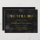 Elegant bröllopsjubileumsinbjudan med orden "We still do" i falskt guldblad mot en mörk bakgrund med bokeh-ljus på framsidan och en mörk bakgrund på baksidan. Denna inbjudan är perfekt för att fira ett bröllopsjubileum vilket år som helst genom att helt enkelt lägga till antalet år som firas i platshållartexten.