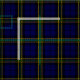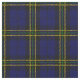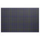 Mörka kungliga blått, grönt, gult, guld- randpläd tyg