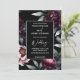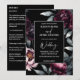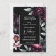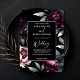 Mörkt stämningsfull noir elegant gotisk burgunderröda blommor allt-i-ett bröllopsinbjudan redigerbar mall omedelbar digital nedladdning, svarta burgunderröda peonior på mörk bakgrund (det är inte 100% svart om det behövs något för att matcha dess 010102) bröllopsinbjudan med bröllopsdetaljer och RSVP QR-kod på baksidan