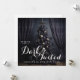 Fira säsongen med en kuslig twist med detta elegant makabre julkort. Här visas ett fantastiskt gotiskt julgran dekorerat med dödskallar, silverstjärnor och lila prydnader, dramatiskt inramat av svarta sammetsgardiner. Den eleganta skriften som förklarar "Önskar er en mörk och tvinnad jul och nyår" balanserar perfekt sofistikation med mörk humor. Denna unika tolkning av traditionell juldekor skapar en kusligt vacker estetik som är perfekt för dem som föredrar sina säsongsfiranden med en nypa mörker.