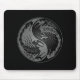 Denna svart- och grå färgyinyang design presenterar två stylized scorpions. Varje arachnid buktar runt om kanten av revan tappar med den är stingeren som tillbaka krullar in mot förkroppsliga. Scorpionspincersna rymms precis ovanför huvudet, och det är ben sträcks ut i ett aggressivt poserar. Detta stilfulla mönster är ett bedöva exempel av detta traditionella symbol för balansera av naturen.