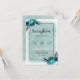 Mörkblå Akvamarin Vattenfärg Blommig Bröllopsmotta Inbjudningar