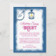 Mörkblå, bärrosa nostalgiska klocka högtidskort julkort