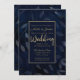 Mörkblå Botaniska Blad Modern Chic Bröllop Inbjudningar